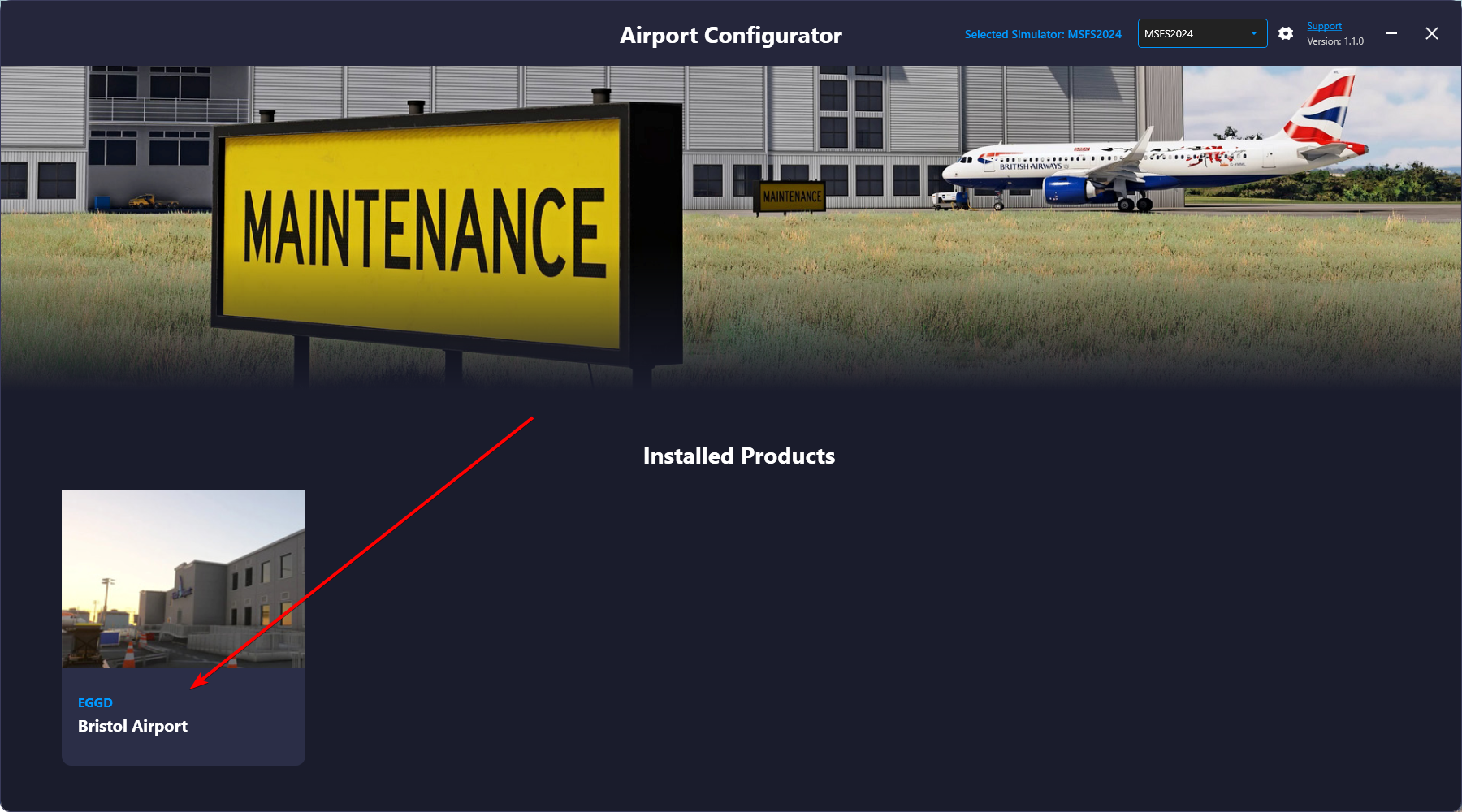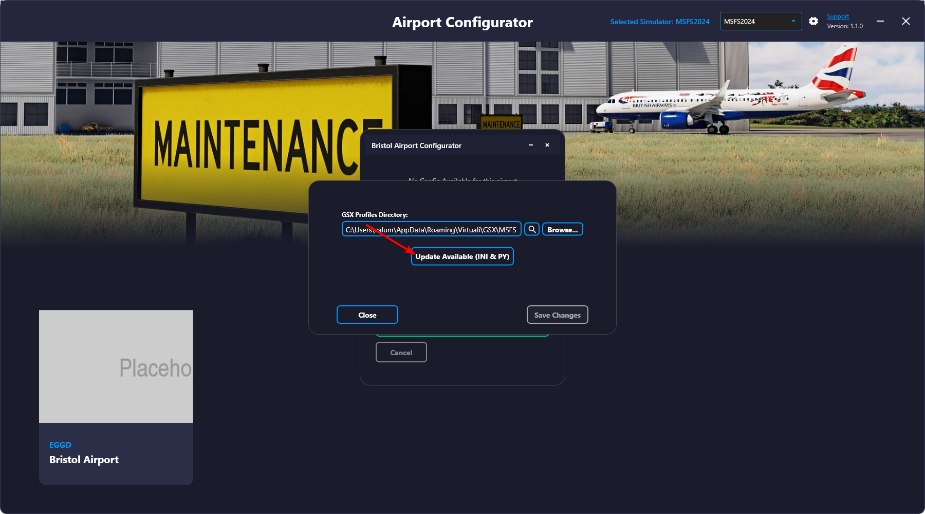 Open the SoFly Airport Config tool. Click on the airport you wish to download the GSX file from. In our example, EGGD Bristol Airport.