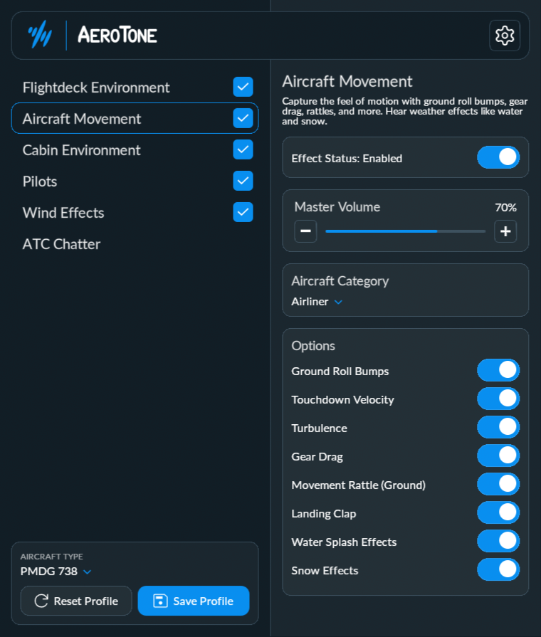 In some categories like ‘Aircraft Movement’, there are further options too to further refine your experience.